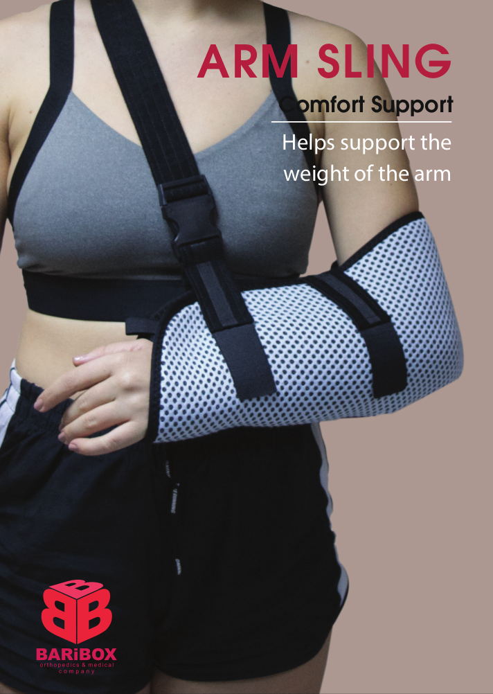 Baribox Fileli Kol Askısı, uzun süreli kullanımda terleme yapmayan, nefes alabilir kumaşı sayesinde konfor sağlayan CE belgeli medikal üründür.